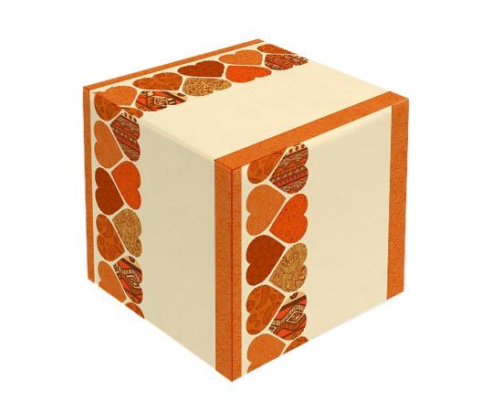 Il fotocubo con la sua magnifica struttura imbottita, accoglierà le tue foto originali: potrai lasciarlo così semplicemente con questa grafica dallo sfondo nude e cuori arancio; oppure potrai abbellirlo con le immagini, che ami di più.