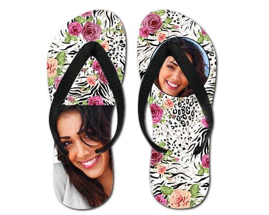 Per decorare l’aspetto delle tue foto ciabatte abbiamo pensato a questa grafica dalla combinazione tra maculato e zebrato nel colore bianco e nero, con rose stilizzate in molte tonalità; il tutto potrà fare da sfondo alla stampa della tua immagine o delle tua foto o magari potresti anche acquistarle semplicemente così come sono.