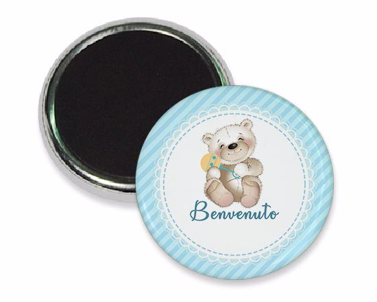 Proposto nella forma circolare e in due dimensioni, riuscirà a stupire chiunque grandi e piccini, con il suo aspetto caratteristico; fai in modo che il tuo magnifico magnete dedicato al tuo piccolino, sia il regalo perfetto per la sua festa. Riusciremo a soddisfare la tua richiesta particolare.