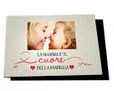 Scegli questa grafica con lo sfondo tempestato da piccoli cuori grigi, con scritta nera e rossa e posiziona all’interno del riquadro la stampa della tua foto o della tua immagine; scrivi se vorrai anche una frase, il nome della tua mammima o una dedica d’affetto.