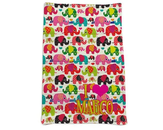 Se hai voglia di fare un regalo straordinario ad una bimba appena nata o ad un bimbo, puoi acquistare online questo utilissimo materasso per fasciatoio; da personalizzare con la stampa della tua immagine o con una foto, verrà decorato da questa grafica con gli elefantini, dalle trame colorate e differenti.