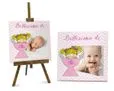 Festeggia il battesimo della tua bimba con questa preziosa mattonella arredo; te la proponiamo con la grafica dallo sfondo con trama a zig zag nel colore rosa, con il piccolo angioletto e la sua coppa, con dedica.