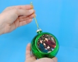 Per la tua favolosa pallina di Natale personalizzata, ci siamo fatti ispirare dal colore verde per la sua tintura; proposta in lucido vetro, accoglie nello spazio a forma di cerchio, la riproduzione della tua foto, abbinata al motivo grafico stilizzato.