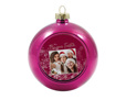 Per un tocco di originalità, scegli questa pallina di Natale personalizzata da decorare con la stampa della tua immagine, foto o sfondo da abbinare al motivo grafico nel colore magenta; subito pronta per essere appesa, si mostra molto grande nella sua forma rotonda.