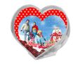 Abbiamo pensato alla palla di neve a forma di cuore per darti la possibilità, di donare alla tua dolce metà o ad una persona a te cara, un regalo davvero commovente per Natale; la tua foto verrà decorate da questa grafica, con le piccoli pois biacchi, riprodotti su sfondo rosso.