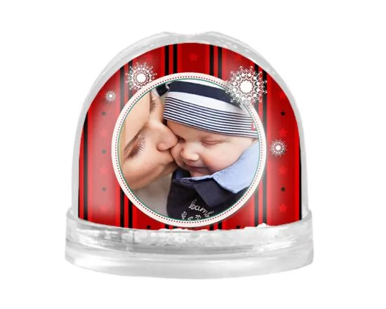 La palla con neve all’interno affascina chiunque per il suo aspetto caratteristico; realizzala online con pochi click e fatti conquistare dalla possibilità di inserire al suo interno, la stampa di una foto o immagine, da abbinare a questa grafica dallo sfondo rosso.
