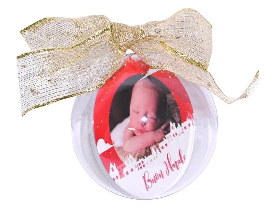 Decidi tu quale sia la foto, immagine o sfondo da inserire all’interno della tua pallina di Natale personalizzata; progettata nella tradizionale forma sferica e il plastica trasparente, potrà essere appesa a qualsiasi ramo o decorazione.