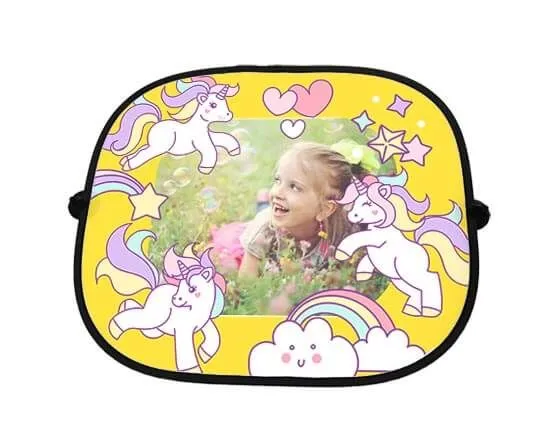 Se hai voglia di personalizzare la tua tendina parasole con qualcosa che sia legato al mondo dei più piccoli, puoi acquistare questa con i teneri unicorni; nella forma tondeggiante con tessuto in poliestere, è dotata di ventose che ti permetteranno di attaccarla dove vorrai.