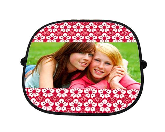 Ti sembrerà strano ma per allontanarci dalle solite proposte per i parasole, abbiamo pensato di realizzare delle tendine in modo tale da proteggere anche i vetri laterali; scegli questa con la sua grafica in stile hawaiano farà da cornice alla stampa delle tua foto; con fiori nel colore rosso, potrà essere accompagnata da una scritta o una parola caratteristica.