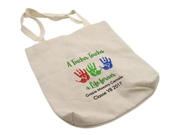 Testo recensione: "La borsa di juta è molto resistente, adatta a trasportare i libri di una insegnante come me. Il disegno stampato è molto bello, i colori vivi e definiti. La spedizione è stata puntuale, l'imballaggio perfetto. Prodotto consigliato."