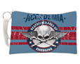 Per completare il tuo look o per creare un gadget straordinario o per una pura esigenza personale puoi acquistare questa pochette; stampa sul tessuto acetato questa grafica con teschio bianco, scritte e fasce rosse.