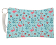 Colorata con questa grafica con fenicotteri rosa disegnati su sfondo celeste, è accompagnata da fiorellini rossi e ramoscelli; personalizza la tua pochette beauty con una foto e pensa anche al retro, per completarla.