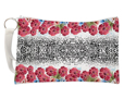 Abbina alla tua borsa mare e alle tue infradito questa pochette personalizzata: meravigliosa per la sua grafica con fascia maculata nel colore nero e bianco, con fiori stilizzati nel colore rosso, riuscirà ad aggiungere colore e personalità ovunque tu la riponga.