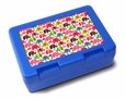 Testo recensione: "Prodotto molto resistente e conserva la merenda in modo igienico. È perfetto nella dimensione in modo tale da poterlo riporre nello zainetto di mio figlio. La stampa colorata si abbina al colore blu e non è venuta via. Consigliato."