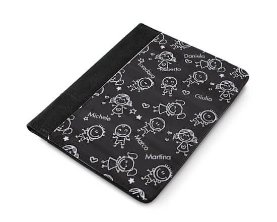 Realizza il tuo portadocumenti in tessuto e rendilo particolare con questo motivo grafico con piccoli bimbi disegnati; potrai scegliere la dimensione giusta per te e potrai personalizzarlo, con una frase, scritta o messaggio particolare.