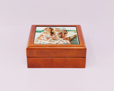 Realizza un raffinato portagioie in legno personalizzabile con le tue foto preferite, grafiche e con testi stampati su piastra in ceramica bianca posta sulla superficie.