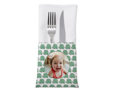 Il portaposate in tessuto verrà decorato sulla tasca con la stampa del motivo grafico pieno di elefantini verdi, disegnati su sfondo bianco; al centro del cerchio, potrai posizionare la tua immagine o sfondo o magari una scritta.
