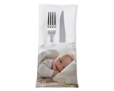 Se hai voglia di decorare la tua tavola natalizia con qualcosa di speciale, scegli questo portaposate in tessuto; personalizza la tasca con la stampa della tua foto, immagine o sfondo da abbinare al motivo grafico con stelle oro e palline.