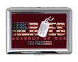 Uno degli accessori personalizzati più richiesti è questo porta sigarette: la sua parte frontale verrà decorata da questa grafica molto eroica con scritte poste al centro, la placchetta militare e il tutto realizzato con la bandiera americana su sfondo bordeaux.