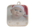 Presina con foto in juta con grafica Natale e fiocchi dorati