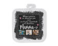 Crea questa presina con foto e stampa sul materiale le tue immagini, foto o sfondi da abbinare alla grafica dallo sfondo scuro, con scritta e cornice abbinata; potrai completare il tutto, con un scritta, frase o messaggio o magari potrai colorare le caselle con un colore.