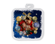 Per arricchire questa presina da cucina nel suo aspetto, ti basterà fare affidamento sulla sua grafica con palline stilizzate nel colore oro e blu, fiocco e sfondo scuro; posiziona al centro la stampa della tua immagine o della tua foto e scrivi anche una frase, un pensiero o perchè no i tuoi auguri.