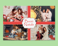 Ammira il tuo splendido collage: è composto da quattro riquadri delimitati da nastrini rossi con piccole stelline bianche. Al centro è posizionata una finestra con il testo Buon Natale da completare con il tuo augurio che potrai posizionare in qualsiasi punto della personalizzazione.