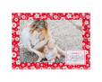 Scegli la possibilità di creare online lo stile del tuo foto puzzle in cartoncino e di abbellirlo con la stampa della tua foto, immagine o sfondo, da abbellire con il motivo grafico con fiori bianchi, disegnati su sfondo rosso e abbinati alla cornice stilizzata.