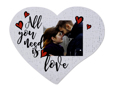 Dai forma al tuo foto puzzle dalla forma a cuore e nel formato A3 e rendilo particolare, con la stampa della tua foto da inserire nel motivo grafico dallo sfondo bianco, con scritta in nero e cuori rossi.