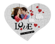 Scegli la possibilità di impreziosire il tuo grandioso puzzle con foto personalizzata sul nostro sito; proposto in questa forma romantica, viene decorato con il motivo grafico nel colore grigio, con nuvole e cuori appesi e le scritte stilizzate.