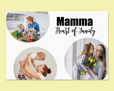 Stupisci la tua mamma in occasione della sua festa con un regalo speciale, crea per lei un foto puzzle da ricomporre insieme, personalizzato con le vostre foto più belle e questa grafica a temi con cerchi e scritta nera.