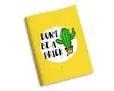 Fai in modo che il tuo quaderno scuola possa risultare originale nella sua copertina dal motivo grafico nel colore giallo, con scritta e pianta verde; potrai lasciarlo così com’è oppure potrai arricchirlo con la stampa della tua foto, immagine, sfondo o decorazione.