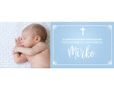 Personalizza lo stile del tuo salvadanaio con la stampa della tua foto, immagine o sfondo da abbinare al motivo grafico nel colore celeste, con la cornice in bianco stilizzata e il simbolo religioso.