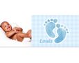 Crea online lo stile del tuo salvadanaio per bambini e personalizzalo con la stampa grafica dallo sfondo celeste a quadretti, con la cornice disegnata, con piccolo piedini posti al centro; potrai impreziosirla con una frase, parola o data da stilizzare o magari potrai inserire una delle nostre clipart.