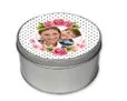 Accessorio dall'utilità indiscussa, amato dal pubblico femminile, te lo proponiamo nella versione tonda con base profonda e coperchio dalla chiusura ad incastro; personalizzala con una tua immagine e impreziosisci il coperchio, con questa grafica romantica.
