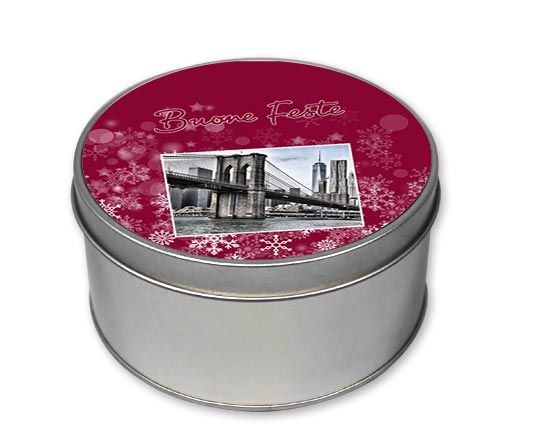 Conserva i tuoi oggetti o i tuoi prodotti aziendali all’interno di questo contenitore, disponibile tra le nostre scatole personalizzate: nella forma rotonda verrà decorata con la stampa della tua immagine, foto o logo associata a questa grafica natalizia.