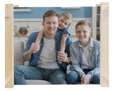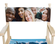 È realizzata con struttura pieghevole e richiudibile in legno naturale ed è personalizzata con le tue foto ed immagini sulla seduta e sullo schienale.