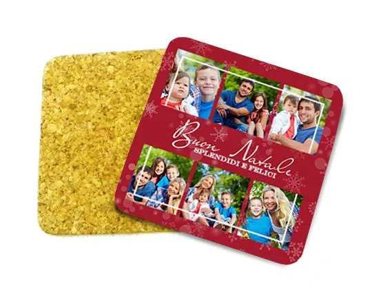 Il sottobicchiere personalizzato si colora nel tema natalizio e accoglie la stampa della tua immagine o della tua foto preziosa; progettato in chiaro sughero e nella forma quadrata con angoli tondeggianti, è un bellissimo gadget che potrai donare in presenza del Natale.