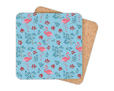 Sottobicchiere in legno quadrato Fenicotteri con fiori