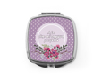 Scegli ad esempio questo e personalizzalo con la stampa di una scritta, una frase o un’immagine e abbinala a questa grafica nel colore violetto con pois e la composizione floreale; affidati alla nostra originalità per la realizzazione dei tuoi specchietti personalizzati e magari donali in presenza di una ricorrenza da festeggiare o come gadget promozionale per il tuo evento magico.