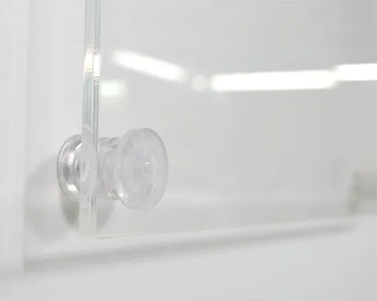 - Il montaggio dei distanziali è a cura del cliente. È consigliabile applicare i supporti direttamente al plexiglass utilizzando una colla acrilica super trasparente priva di solventi. (Istruzioni di montaggio allegate al prodotto)