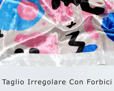 Infine potrai scegliere tra 4 rifiniture: taglio irregolare con forbici (fornito gratuitamente), taglio sulla linea di stampa, punto overlock (tagliacuci) e orlo ripiegato.