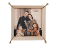 E' formato da un materiale rigido rivestito in juta, molto capiente e dotato di bottoncini in metallo nei 4 lati.