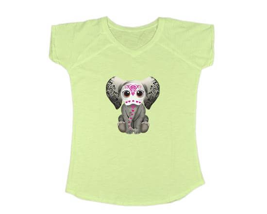 La tua t-shirt dallo scollo a V è pronta per essere personalizzata con la stampa grafica con il magnifico elefantino stilizzato; proposta in cotone e in diversi colori, è ideale per donne e ragazze che amano valorizzare il proprio look.
