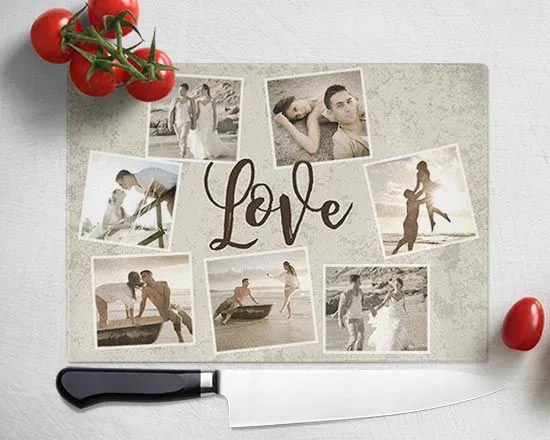 Scegli riprodurre il tuo fotomontaggio sul tuo prezioso tagliere di vetro; creato per te che hai voglia di stupire chi ami, sarà perfetto come regalo per la tua ricorrenza di San Valentino.