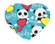 Piccoli panda stilizzati andranno a decorare la stampa della tua immagine, foto o sfondo che deciderai di riprodurre sul tessuto; il motivo grafico viene realizzato con questi cuccioli, abbinati a sfondo celeste con scritte e cuori colorati.