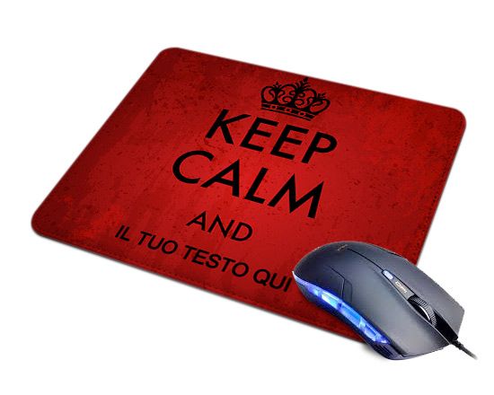 Impreziosisci l’aspetto del tuo tappetino personalizzato con questo motivo grafico dal singolare Keep Calm e il suo sfondo rosso e completala con una tua scritta, una frase o un messaggio simpatico e comunicativo, che possa rendere più prezioso il tuo tappetino mouse.