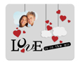 Personalizza questo tappetino per il mouse rettangolare con la stampa della tua foto, immagine o sfondo, da abbinare al motivo grafico con nuvole e cuori appesi, abbinati a scritte stilizzate e disegnati su sfondo grigio.
