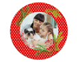 Acquista il meraviglioso tappetino mouse natalizio e personalizzalo con la stampa della tua immagine, foto o logo da incorporare al centro di questo tema grafico con pois riprodotti su sfondo rosso, bacche natalizie e scritta di buon augurio.