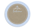 Colora lo stile del tuo tappetino mouse dalla forma circolare e fatti conquistare dal motivo grafico composto da sfondo celeste stilizzato, con la cornice decorata nel colore scuro, con scritte e il simbolo religioso.